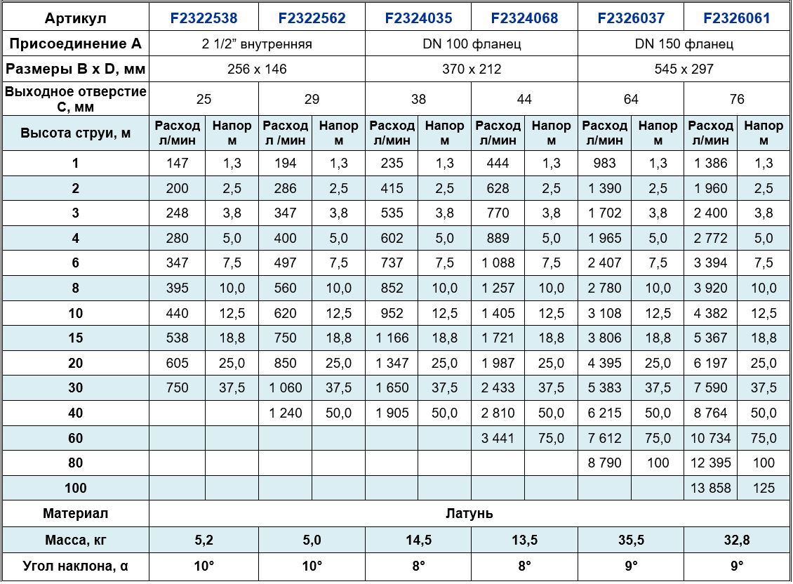 Высота струи max, м